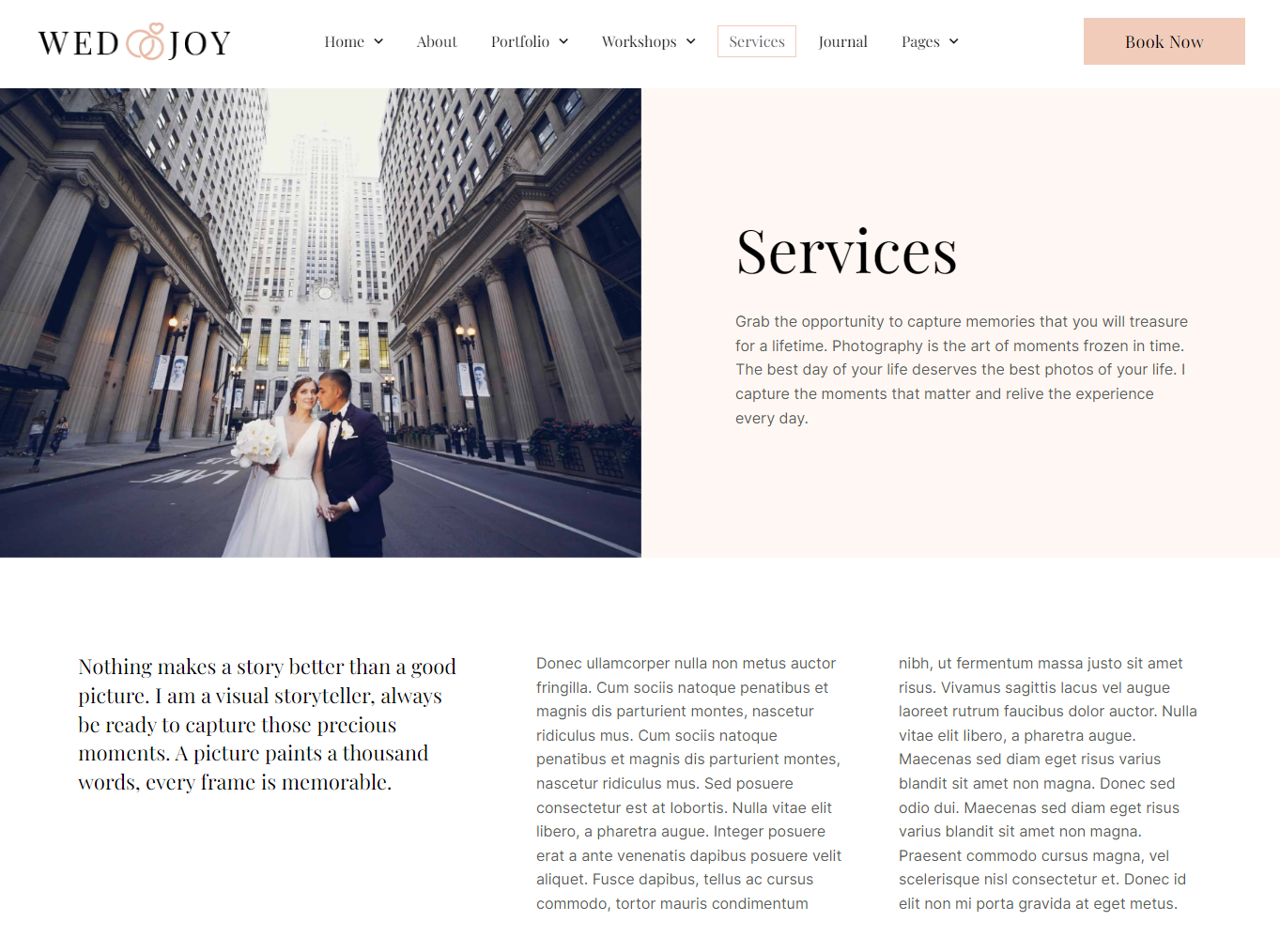 Тема WordPress для свадебной фотографии — это готовый шаблон веб-сайта, специально созданный для фотографов и студий, специализирующихся на свадебной фотографии. Он предоставляет красивую и функциональную платформу для демонстрации вашего портфолио, галерей клиентов и услуг на вашем веб-сайте WordPress.