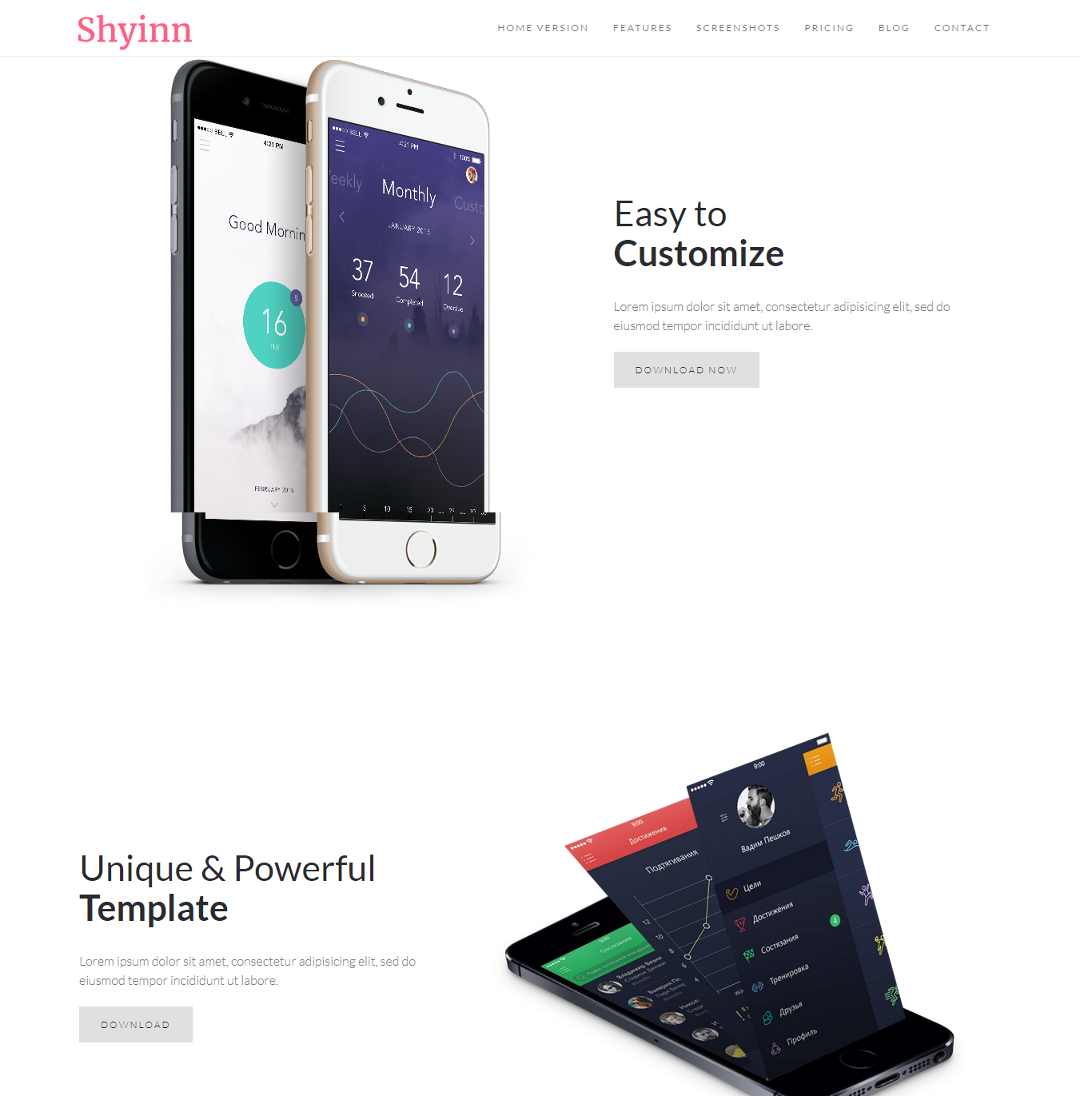 Она также поставляется с простыми в использовании параметрами настройки, позволяющими персонализировать цвета, шрифты и макеты, чтобы они идеально соответствовали идентичности вашего бренда. Независимо от того, запускаете ли вы новое приложение или продвигаете существующее, Shyinn предоставляет идеальную платформу для привлечения вашей аудитории и увеличения загрузок.